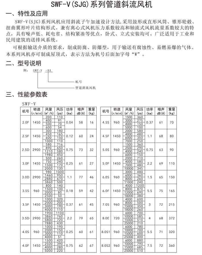 四、SWF-V(SJG)系列混流風(fēng)機